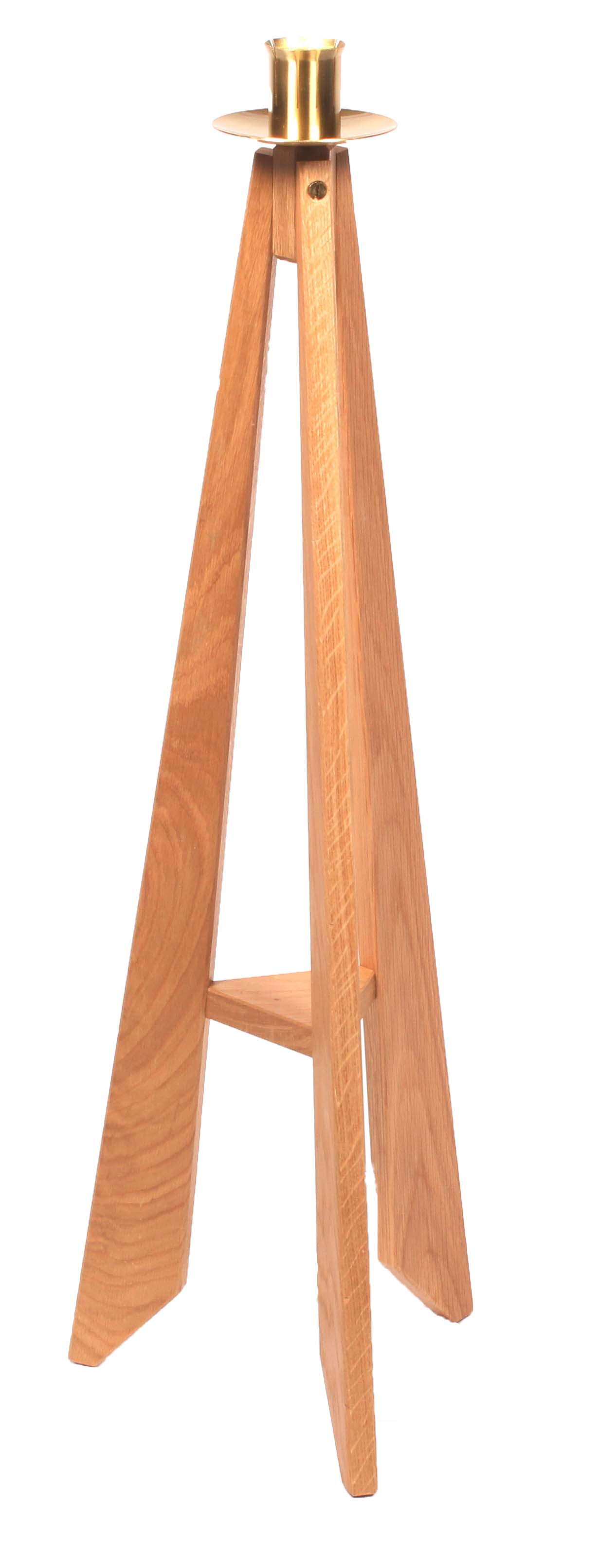 Egelysestage fremstillet i massiv eg. Med lysholder og manchet i børstet messing