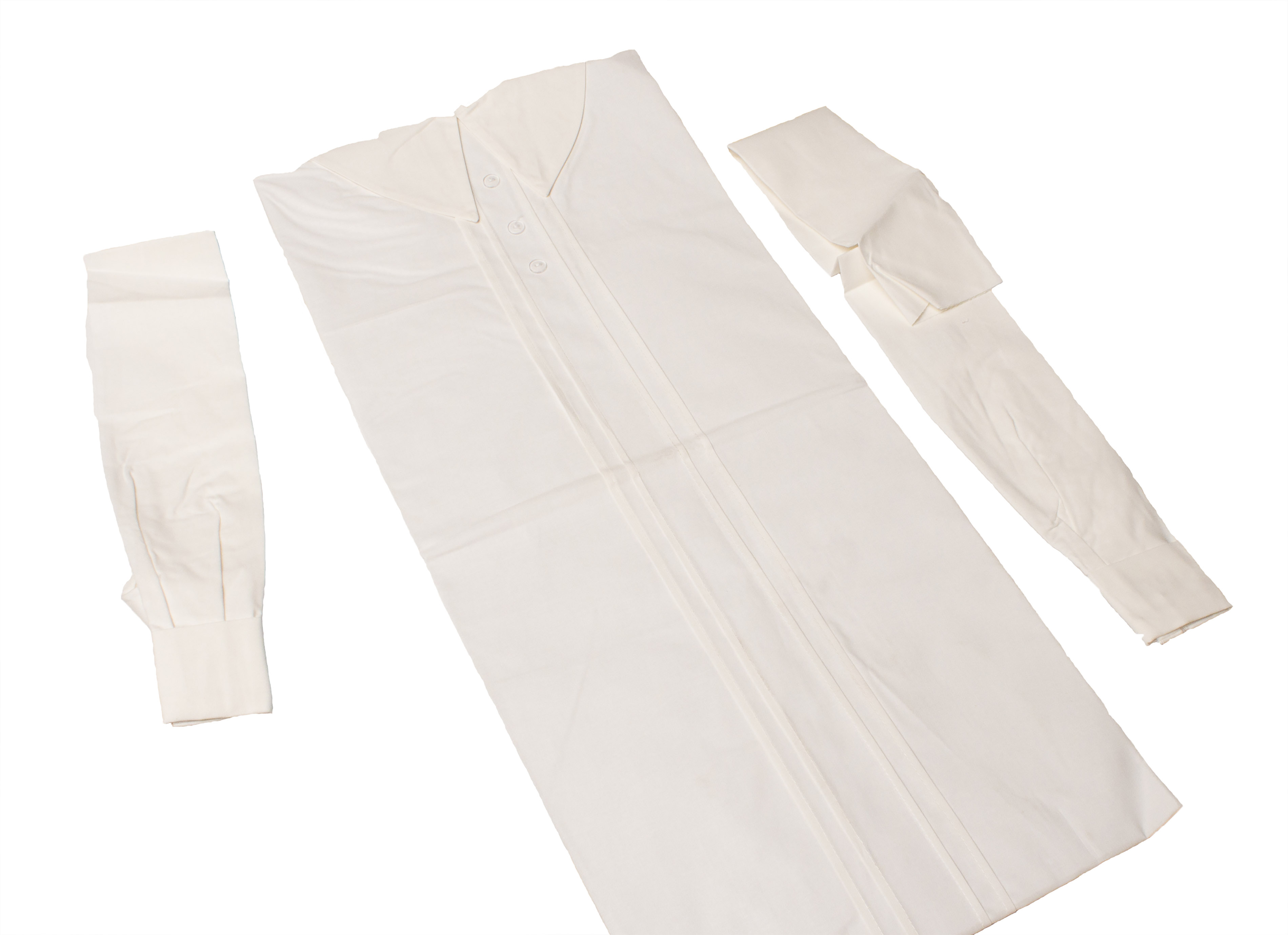 Svøbningsskjorte i hvid økologisk bomuld. Neutral = dame og herre er ens. Løse ærmer til nemt svøbningsarbejde