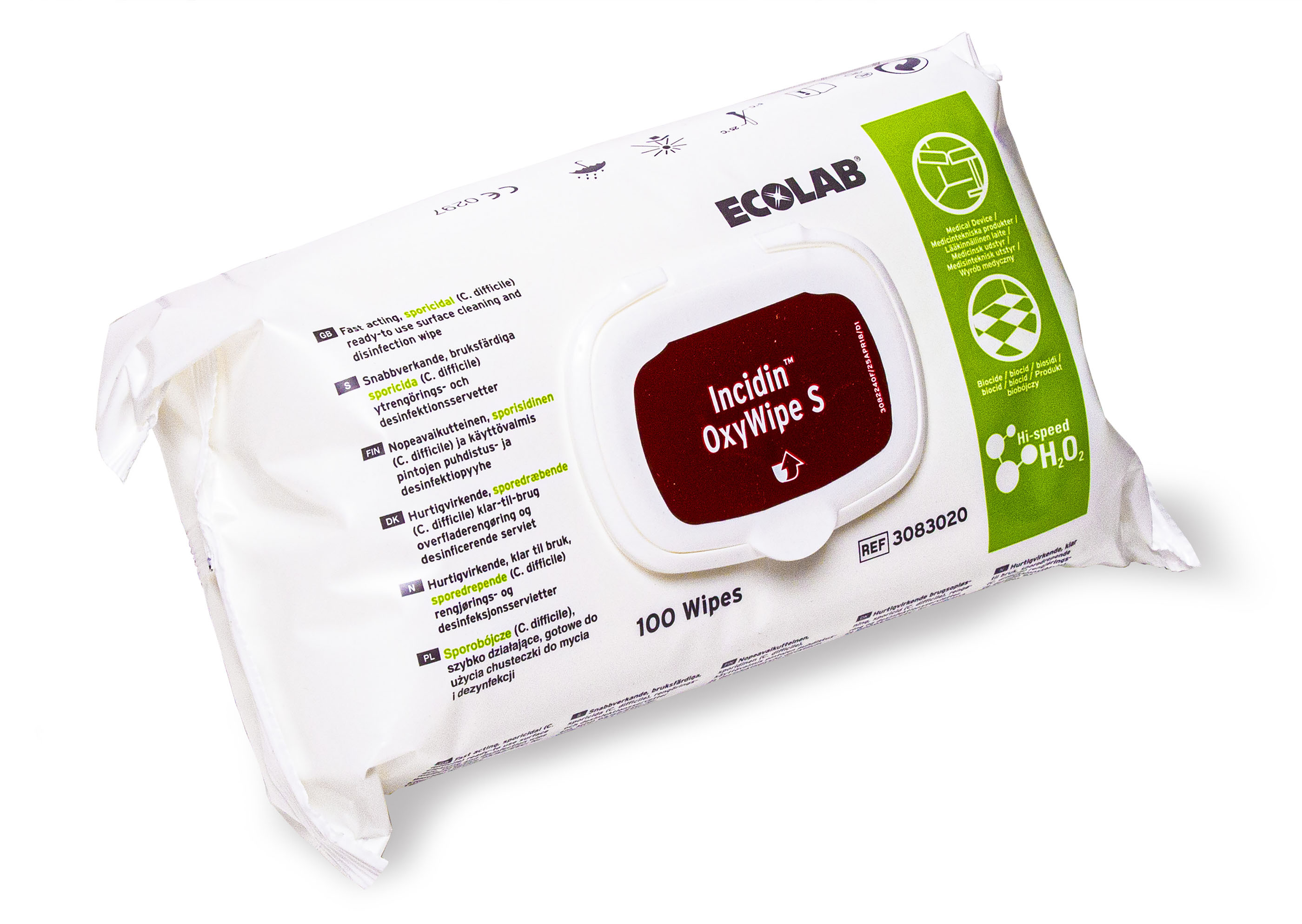 Overfladedesinfektionsserviet. Incidin Oxywipe S. 100 / fpk