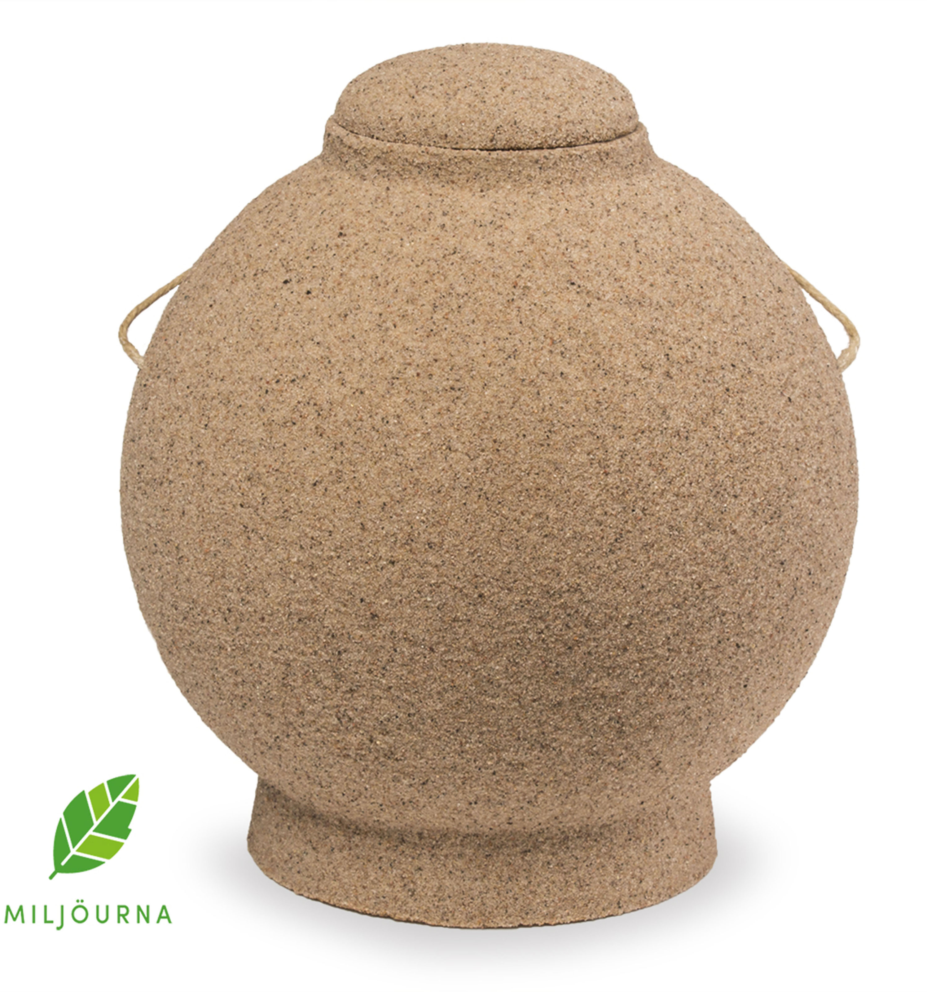 Miljøvenligt urne lavet af sand fra den svenske kyst. Velegnet til både begravelse i jorden samt spredning til søs. Urnen opløses efter 10-20 minutter i vand. Forgængelig.